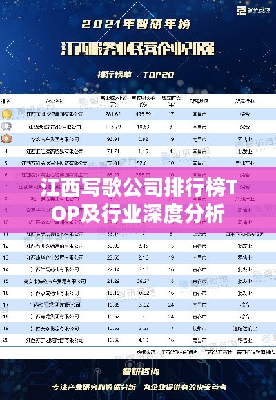 江西省是中国音乐文化的重要发源地之一,近年来随着音乐产业的蓬勃发展,越来越多的写歌公司在江西崭露头角,本文将介绍江西写歌公司的排名及相关行业分析。江西写歌公司排名1、炫音音乐制作公司炫音音乐制作公司是江西省内最具影响...